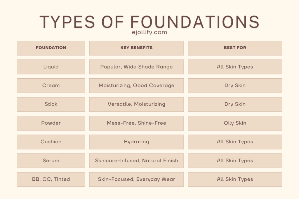 Because of their bendability, spreadability, and ease of use on all skin types and textures, liquid foundations are the most popular and practical type of foundation.